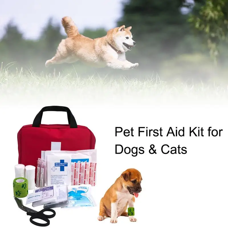 Free shipping 19 Items PVC Oxford Cloth Pet Outdoor Camping First Aid Kit Medical Box Non-Stick Pad Band-Aid Afet
